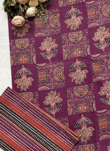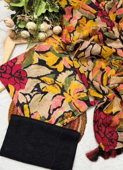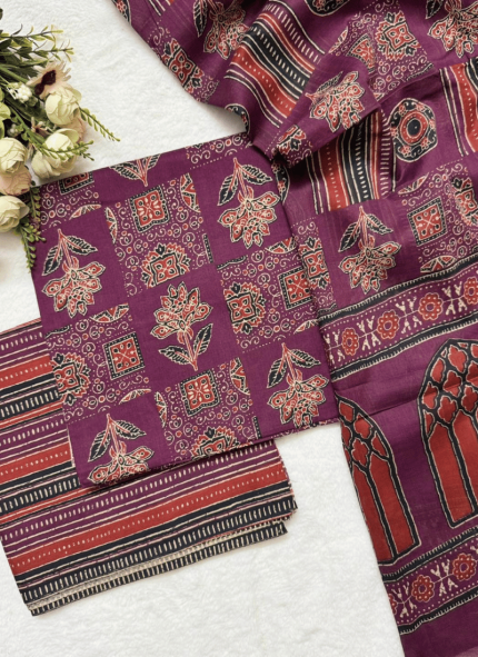 TOP – PURE BAMBER SILK WITH PITTA EMBROIDERY BUTTIS, NECKLINE OR HEMLINE AND SCALLOPED EMBROIDERY BORDER ON SLEEVES